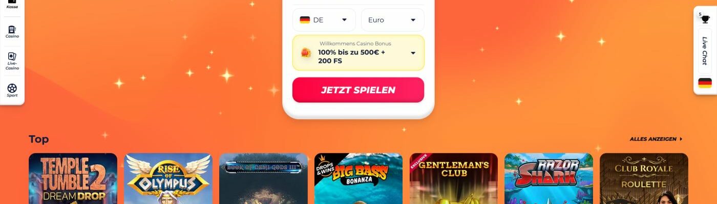 Die Mindesteinzahlung, die nötig ist, um 100% Ersteinzahlungsbonus und 200 Freispiele zu erhalten, beträgt 20 EUR.